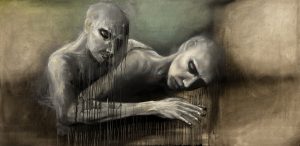 In a room filled with silence and shadows, one endeavors to comfort either a beloved one or oneself, while the soul is torn apart by a silent storm, melting away. Yet, they hold onto each other tightly, determined to withstand the darkness together or alone.